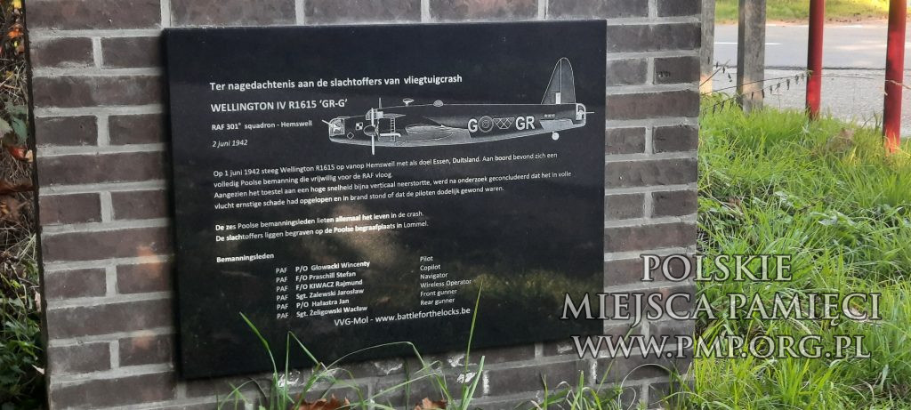2 czerwca 1940 roku załoga bombowca Wellington Mk IV R1615 GR-G; 301-go Dywizjonu Ziemi Pomorskiej wystartowała o godzinie 23:53 z RAF Hemswel do udziału w drugim nalocie tysiąca bombowców. Cele znajdowały się w Essen w Niemczech. Samolot został trafiony przez Flak i rozbił się w Belgii.